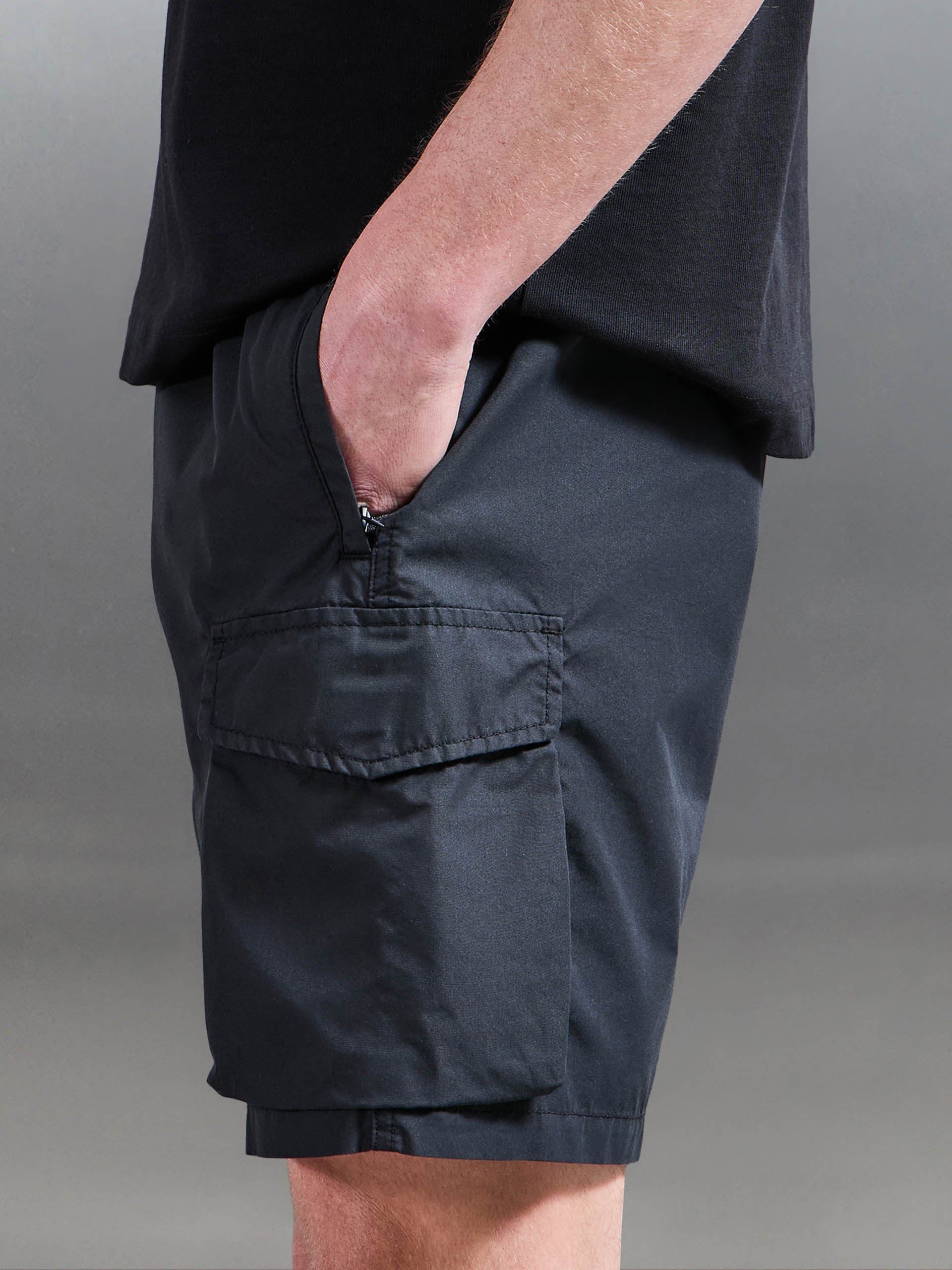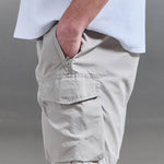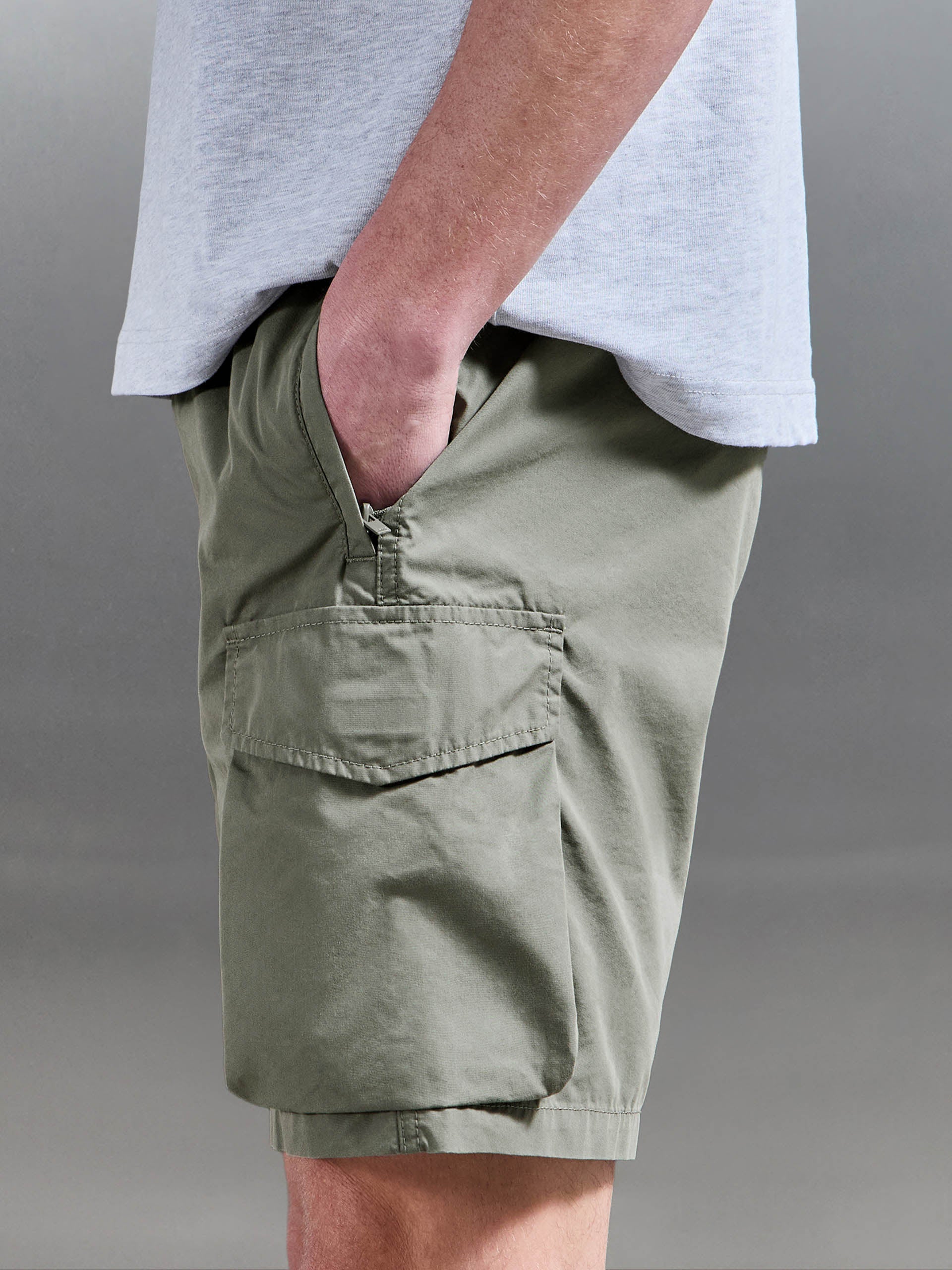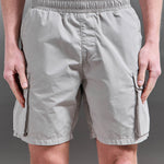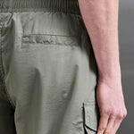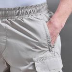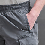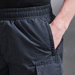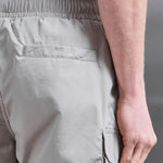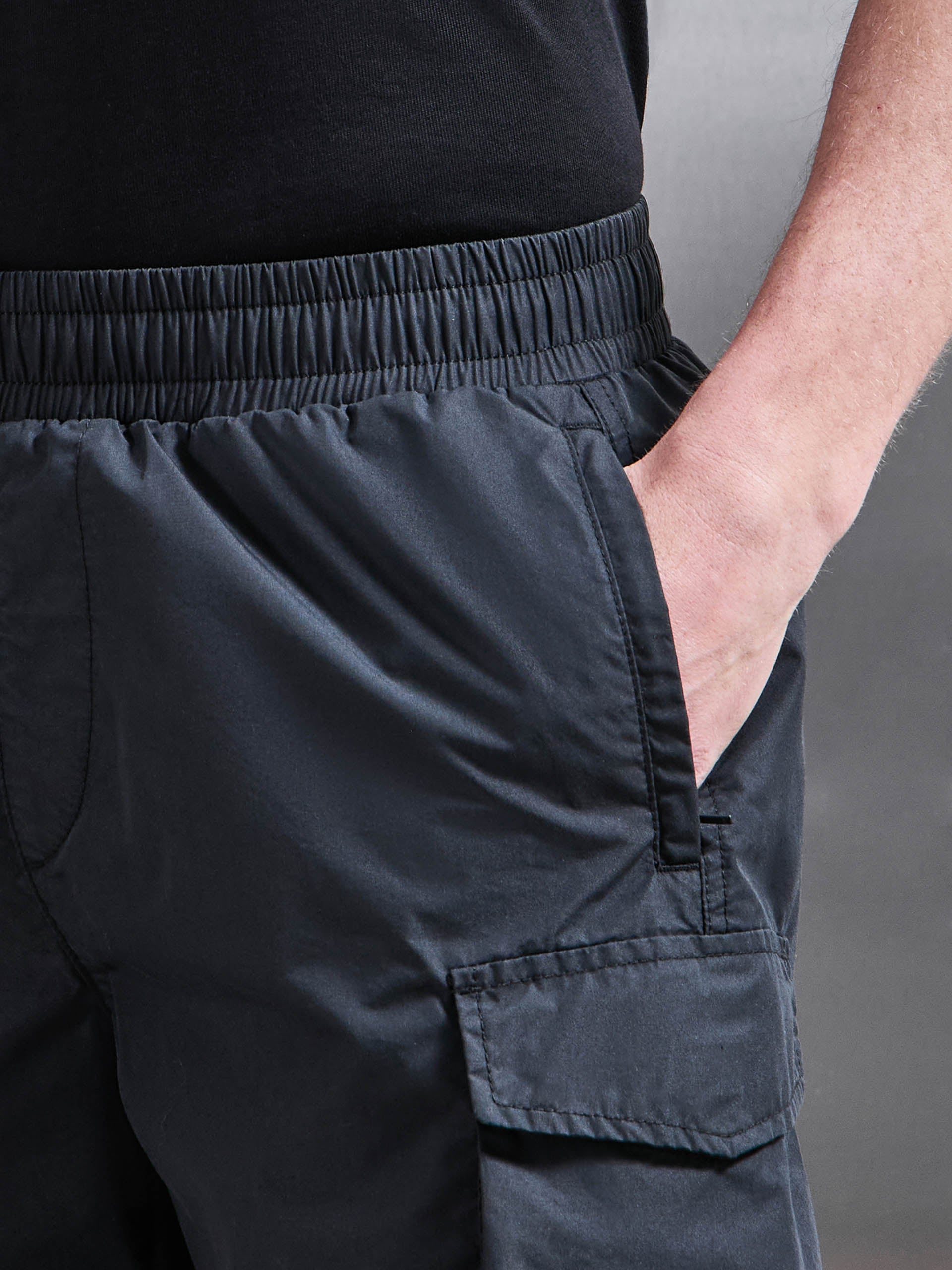 Coupe ample avec ceinture élastiquée. Tissu tissé mélange coton. Cordons internes assortis. Poches zippées latérales dissimulées à la ceinture. Poches cargo fonctionnelles à chaque cuisse avec rabat. Poche dos supplémentaire. Ourlet cousu.