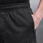 Coupe slim avec ceinture élastiquée. Mélange coton teinté pièce pour un rendu mat. Cordons internes ton sur ton. Poches zippées latérales dissimulées à la ceinture, Poche dos supplémentaire. Poches cargo façonnées à chaque cuisse. Top stitched seam detail. Ourlet cousu.