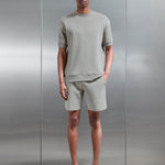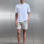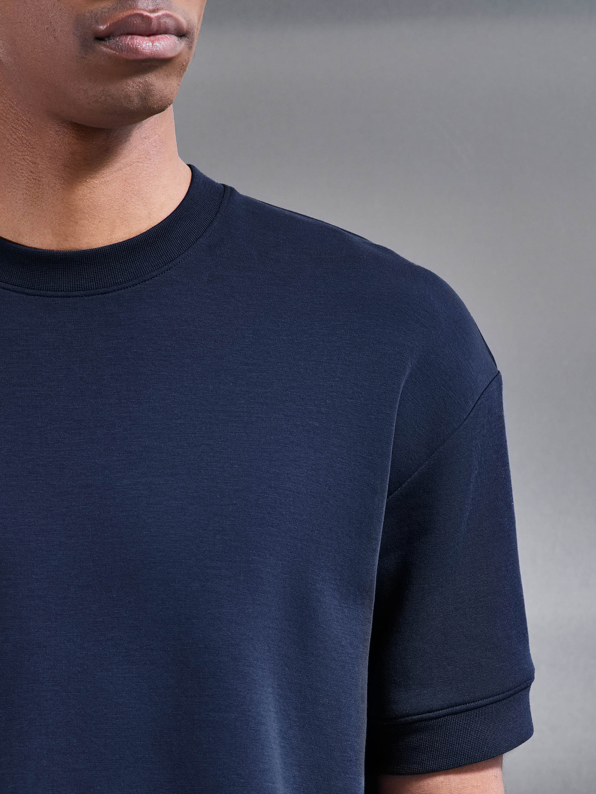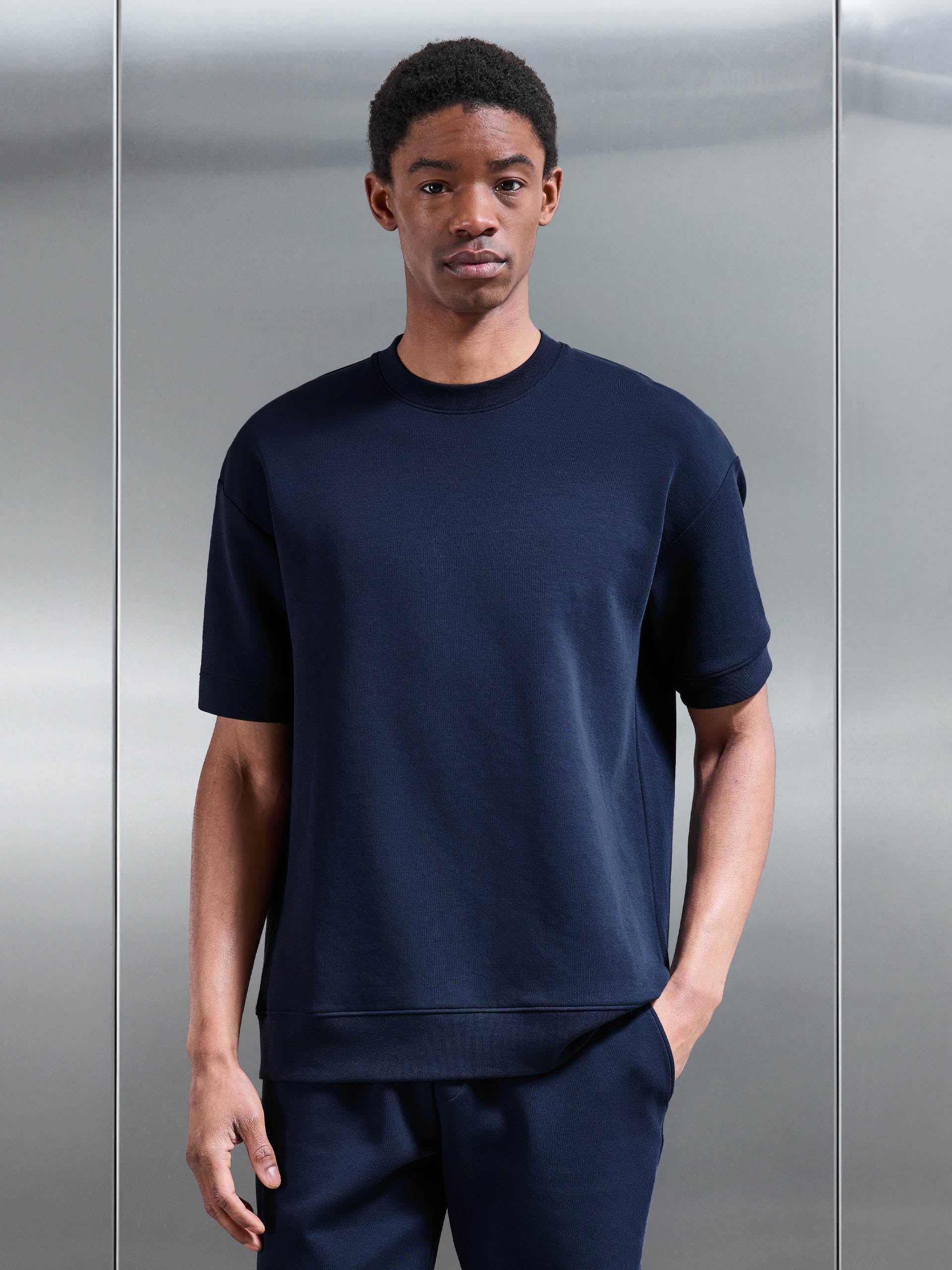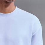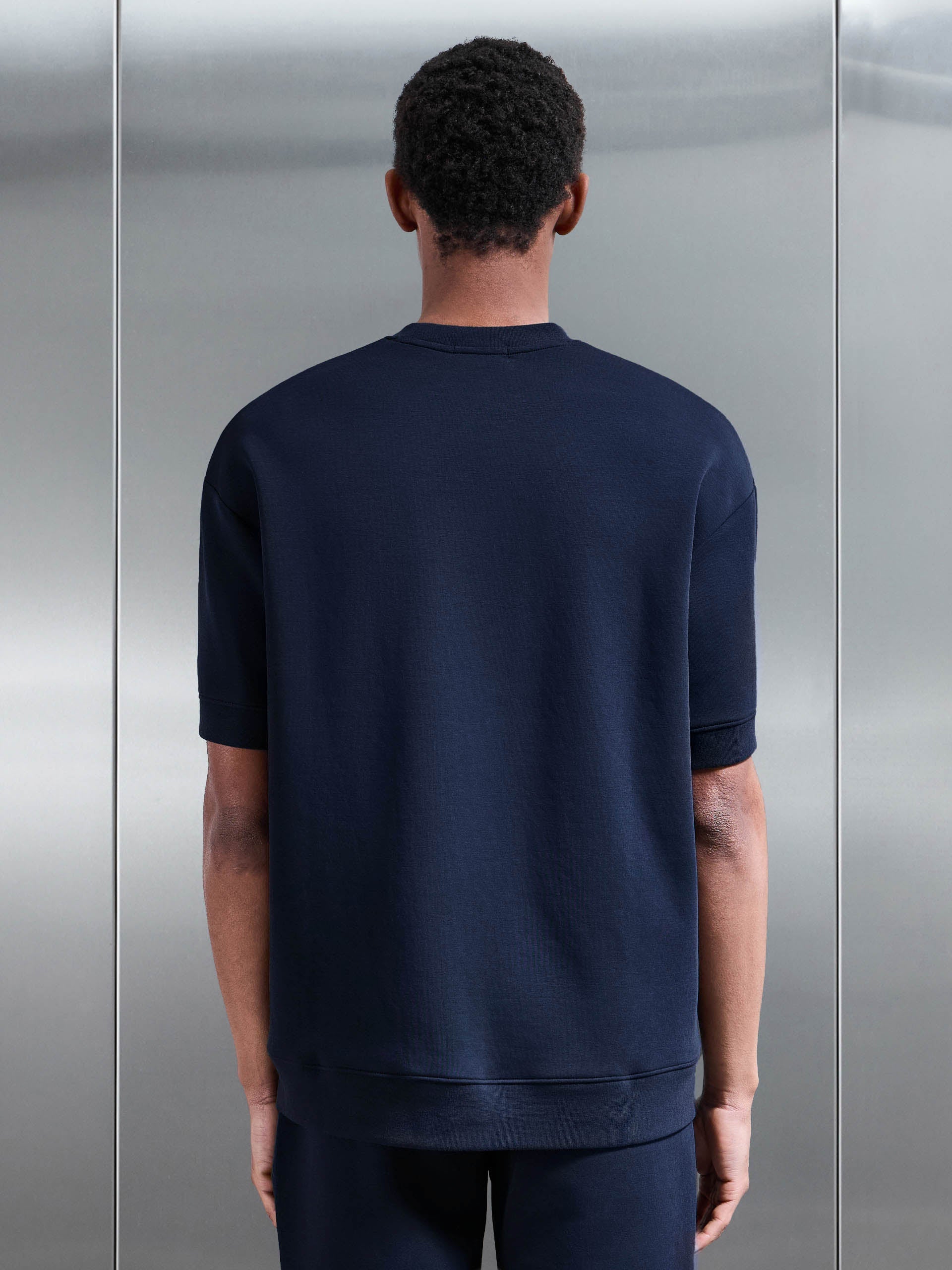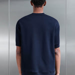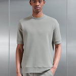 T-shirt coupe relaxed avec col rond. Interlock mi-lourd lisse au toucher. Épaules tombantes avec manches courtes. Broderie haute densité ton sur ton au col dos. Côtes ton sur ton au col, poignets et ourlet.