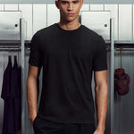 T-shirt coupe slim avec col rond. Jersey souple léger. Manche courte avec surpiqûre double aiguille au poignet. Surpiqûre double aiguille ton sur ton à l'ourlet. Logo caoutchouc ton sur ton au col dos.