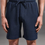 Coupe slim avec ceinture élastiquée. Tissu seersucker texturé léger. Cordons externes assortis. Poches latérales à la ceinture. Ourlet cousu.